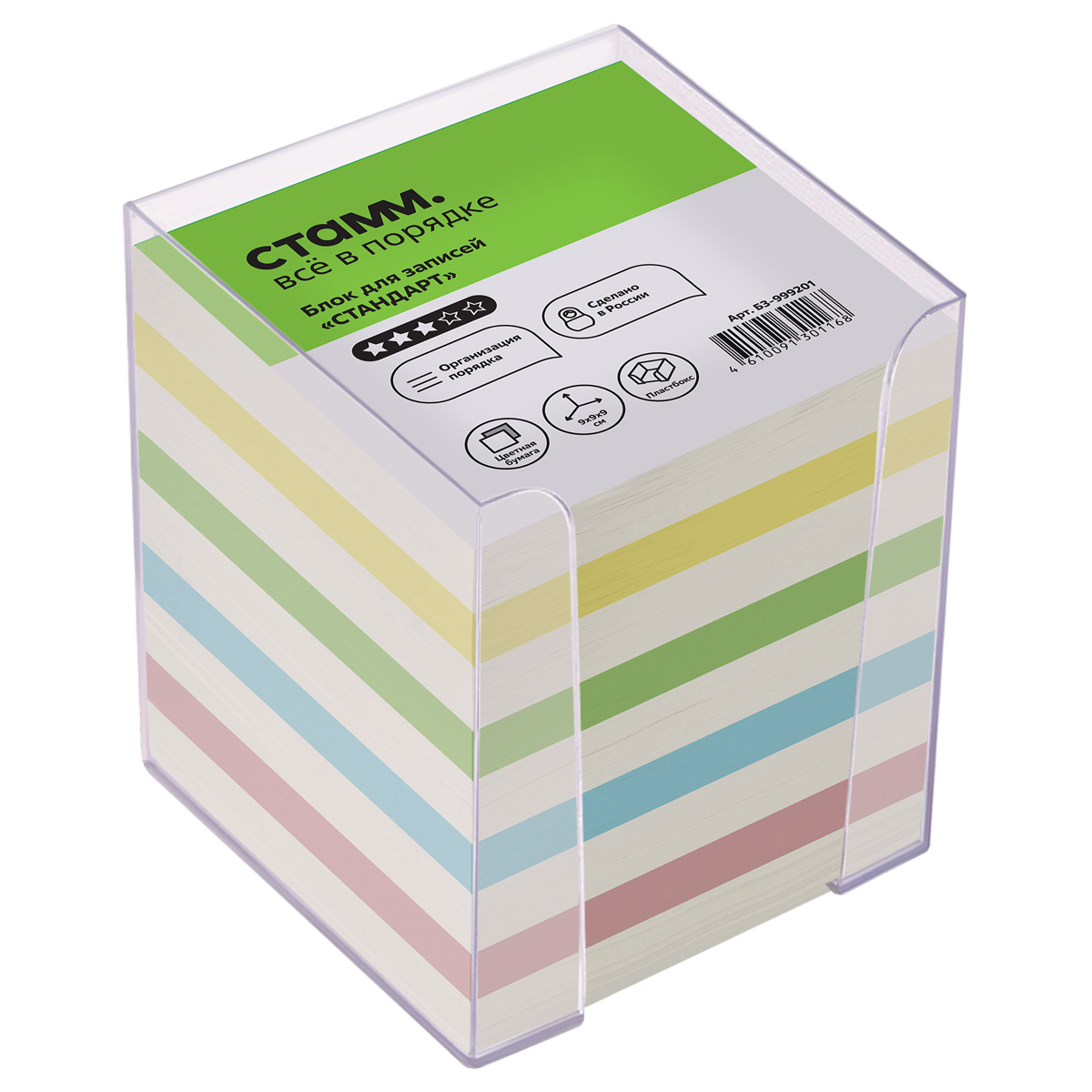 Блок бумаги «СТАММ» Стандарт в прозрачном пластиковом боксе подходит для оперативных записей необходимой информации.