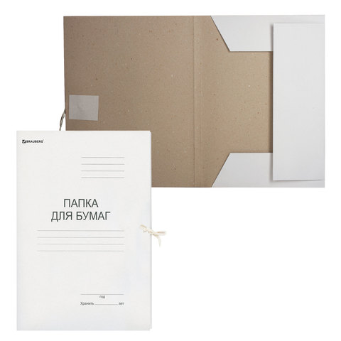 Папка для бумаг BRAUBERG на завязках с цельновырубными клапанами применяется для хранения бумаг и оперативной работы с документами сотрудниками различных организаций и торговых предприятий.